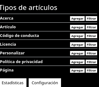 Customizing your identity as a Fediverse account is done from your articles panel, by adding the “About” content type, in the left side panel. It’s the first in the list.